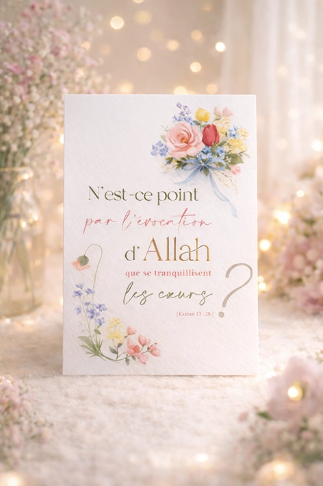 C’est une carte idéale pour apaiser le cœur d’une amie, soutenir un proche ou simplement rappeler que la sérénité se trouve dans l’évocation d’Allah (dhikr, coran, …)