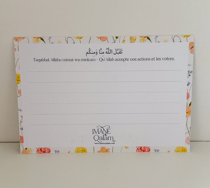 Parfaite comme carte de vœux pour l’Eid, elle peut être offerte seule, glissée dans un cadeau ou déposée sur une table de fête pour accueillir vos invités.
